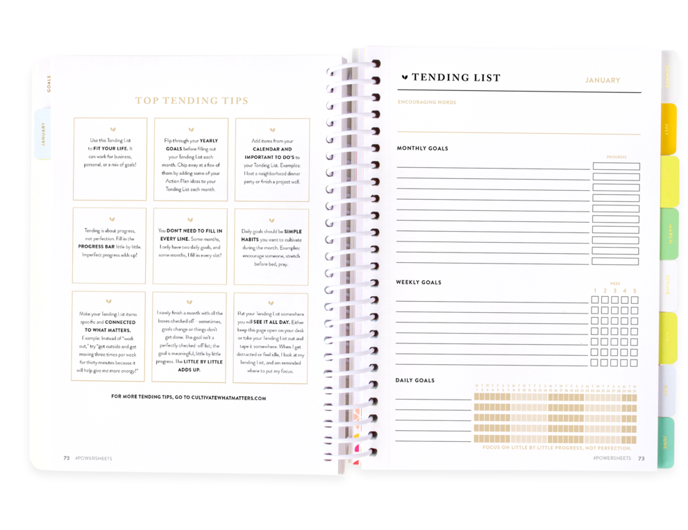 On the Tending List you'll be given space to break down the month's goals into either monthly, weekly, or daily to best accomplish each task.